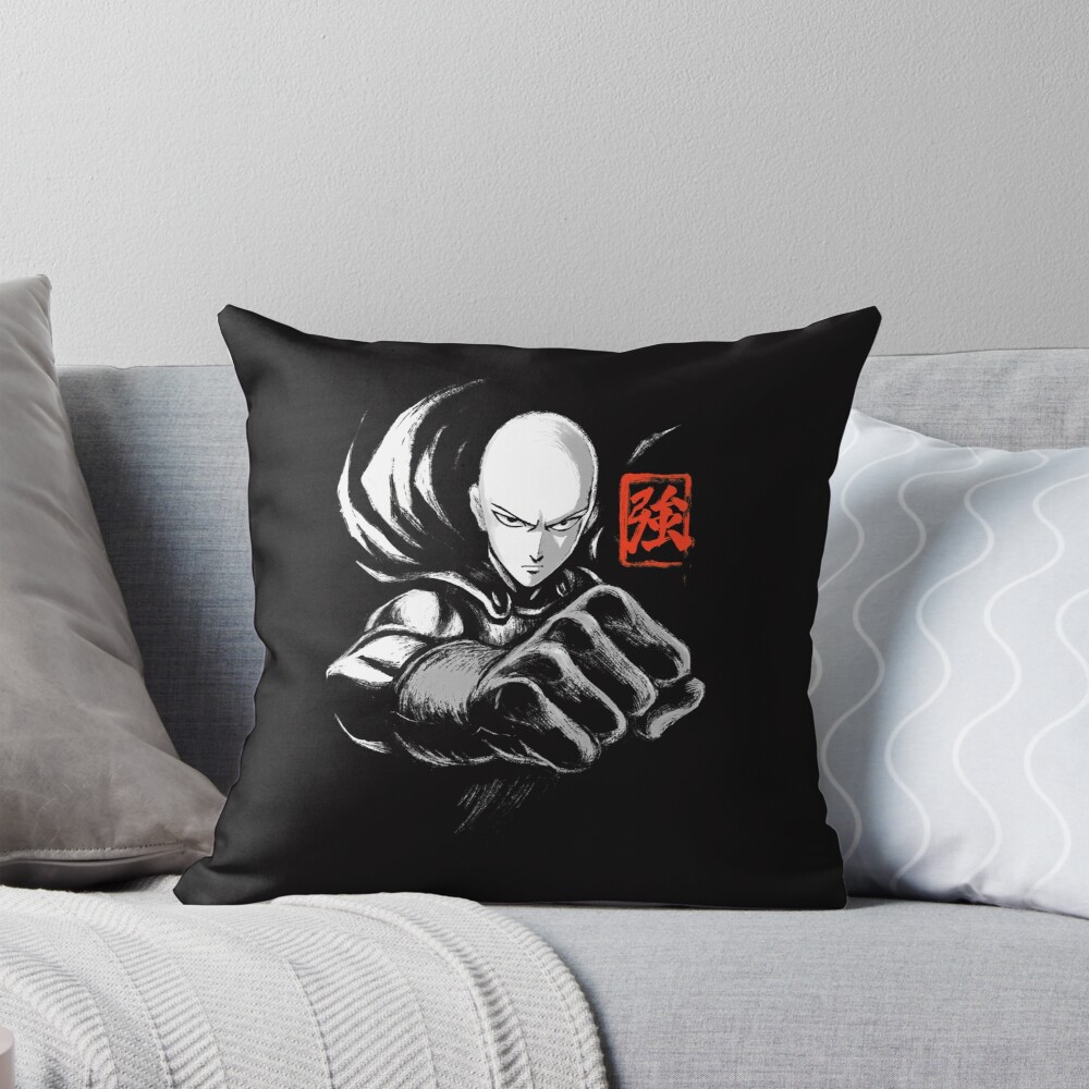 Ink Punch Manga Anime Hero Japanese Kanji Throw Pillow