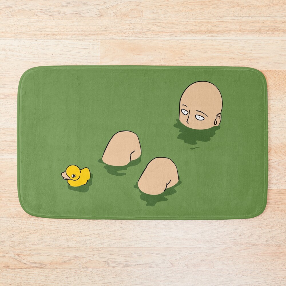 Superhero Bath Time Anime Man Fighter Bald With Ducky Bath Mat